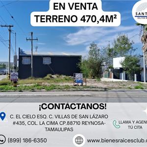 terreno en venta 470, 4m2 calle el cielo esq c villas de san lorenzo #435 col la cima cp 88710.. 8991-866350
